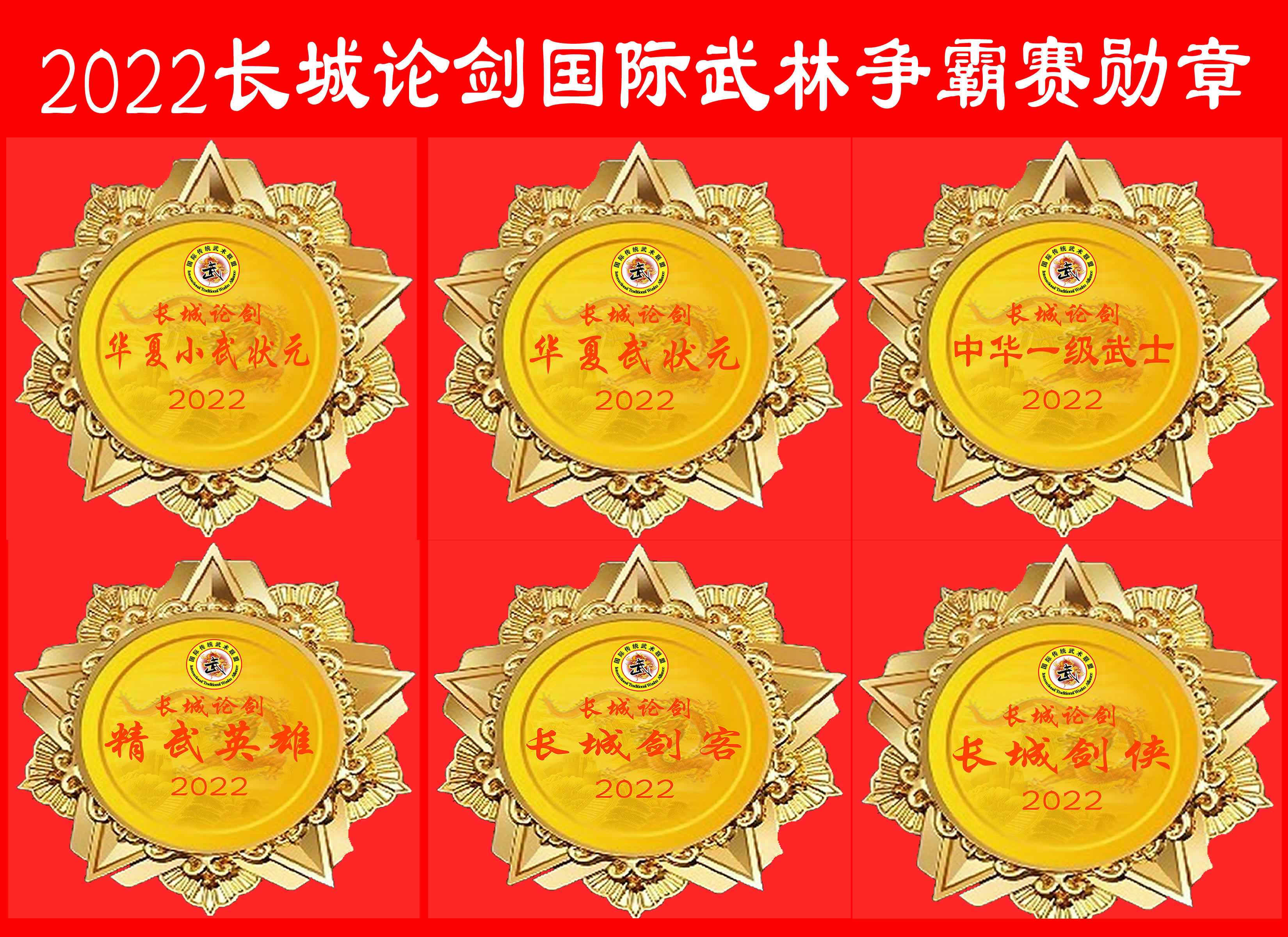 凡获得长城剑客、长城剑侠、华夏小武状元、华夏小武状元、精武英雄、中华一级武士的武者颁发勋章一枚!