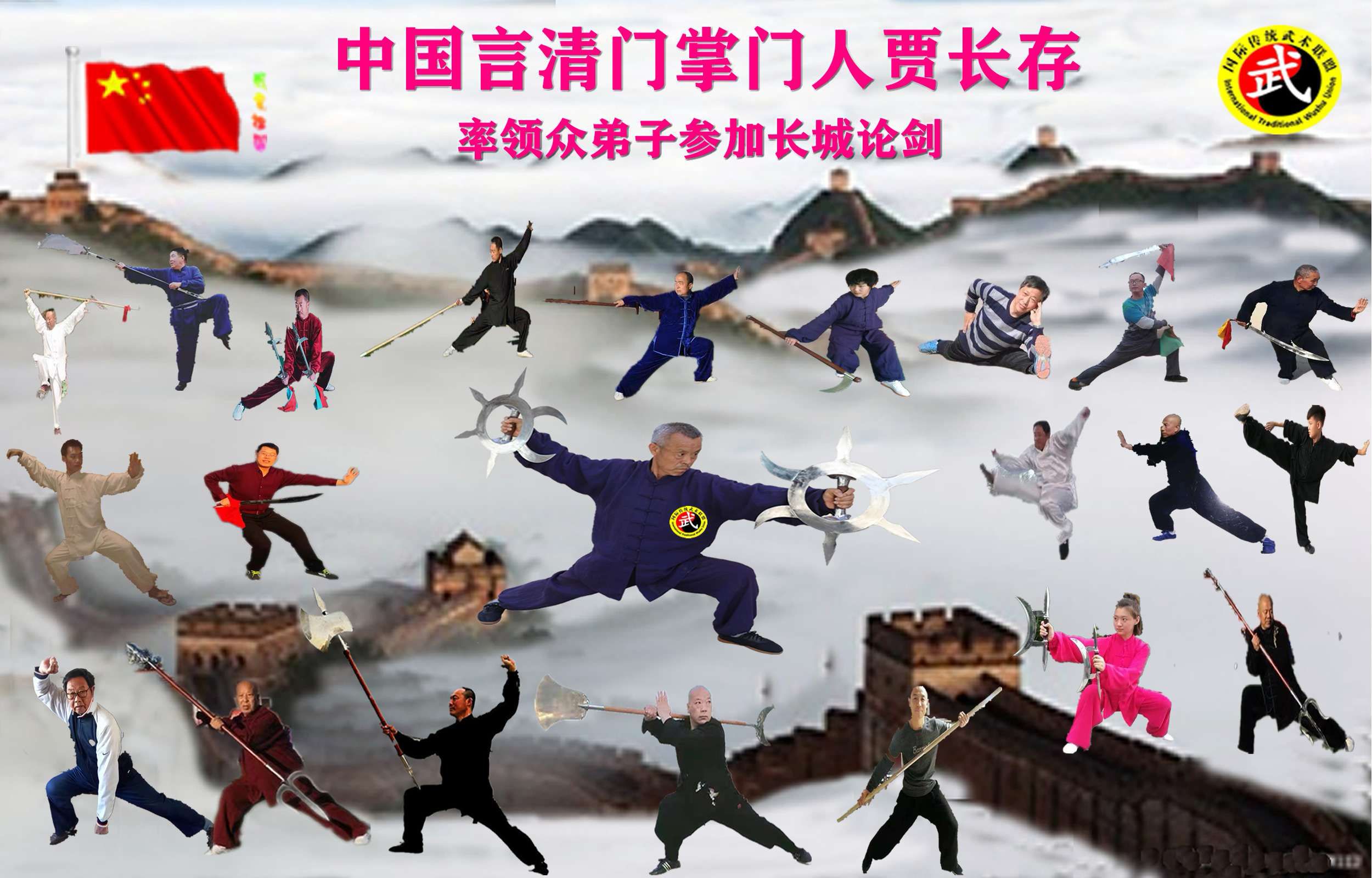 贾长存老师,国际武术九段,当代武学名家,言清门掌门人 ,弟子上万人,2019第一届'长城论剑'国际武林争霸赛形象大使。