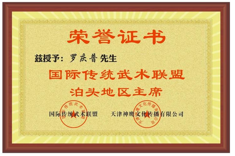 罗庆普老师,河北沧州人,国际传统武术联盟泊头地区主席,国际武术 八段 国际武术一级教练, 国际武术一级裁判员 ,2018航母论剑、2019长城论剑担任裁判员。