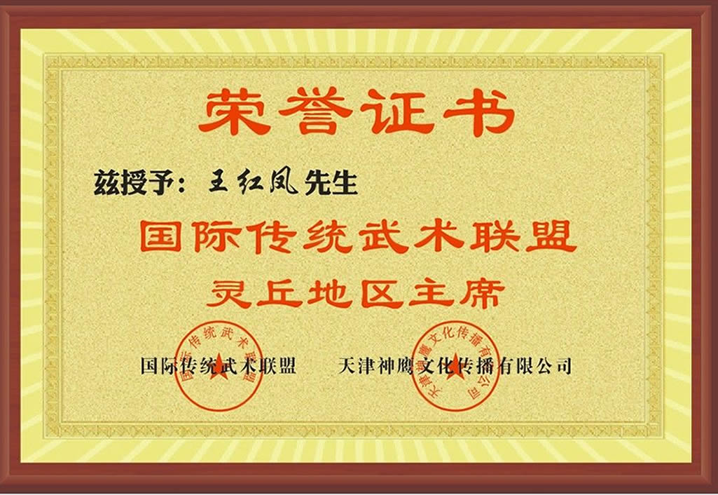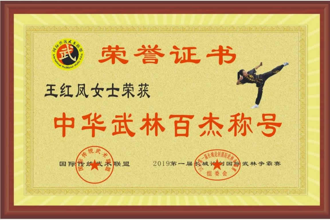王红凤,国际传统武术联盟会员,中国灵丘地区主席,国际武术七段,中华真武门正脉传人!中华武林百杰人物!胡永春老师的得意弟子。