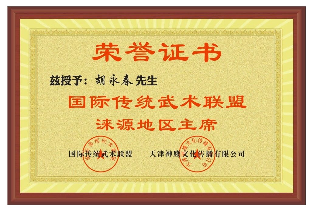 为传承与发扬武术国粹,胡永春老师广收门徒,愿意为中华武术走向世界献出全部精力!愿与武林同道相互切磋交流。欢迎武术爱好者前来学习。