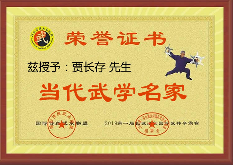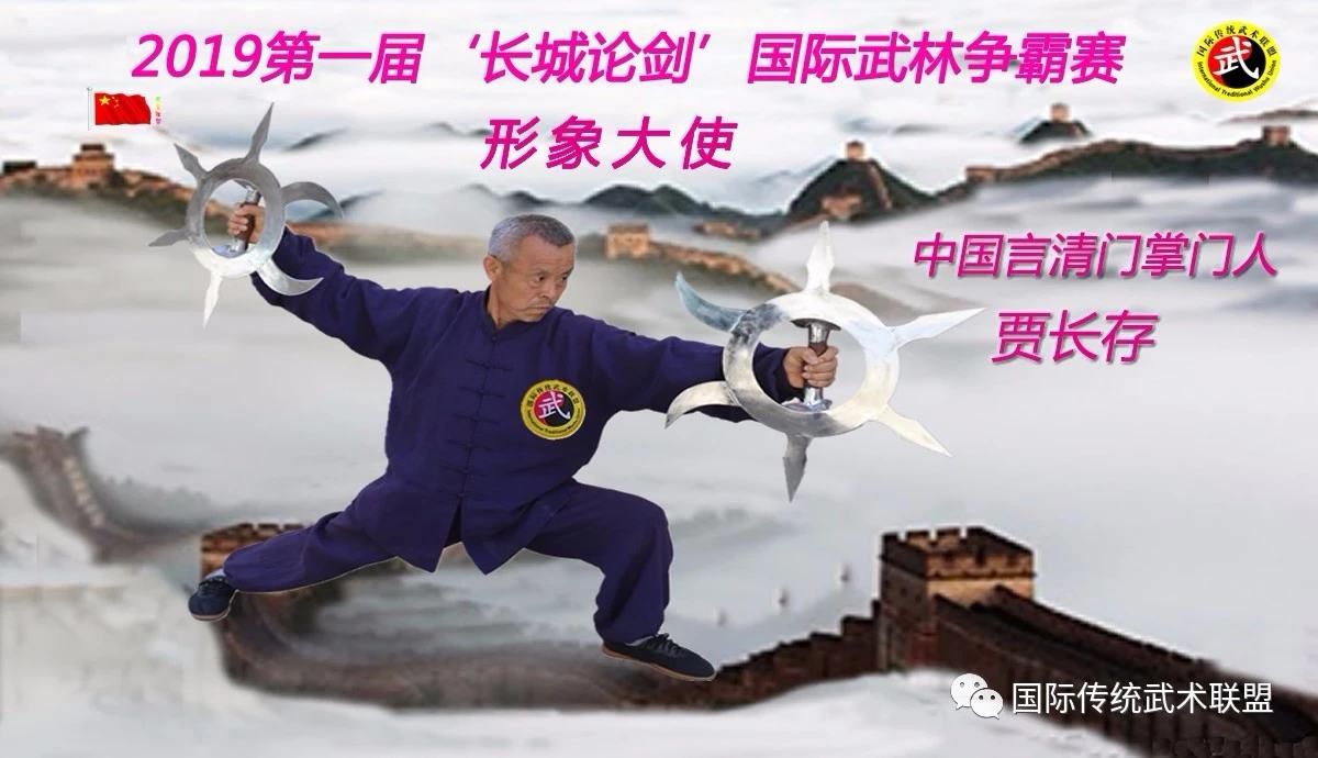 贾长存老师,国际武术九段,当代武学名家,言清门掌门人 ,弟子上万人,2019第一届'长城论剑'国际武林争霸赛形象大使。