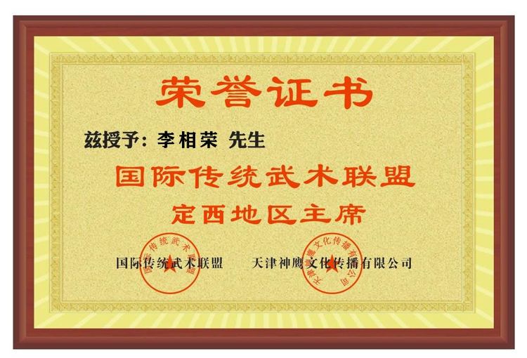 李相荣老师,甘肃岷县人,中华武林百杰 ,当代武学名家,中国传统文化传承委员会专家 委员,国际传统武术联盟九段,高级教练,甘肃省定西地区主席, 培训基地负责人。2018航母论剑传播大使。